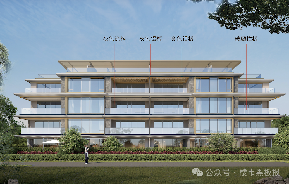 建筑方面,项目甄选铝板、玻璃栏板材质搭配灰金色调曲线,彰显历久弥新的建筑质感。