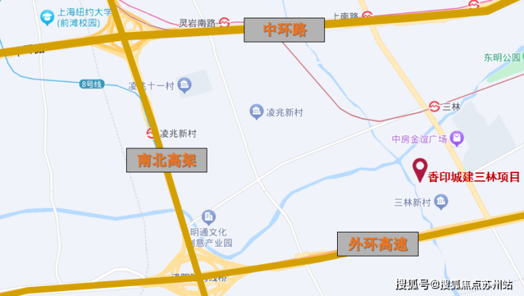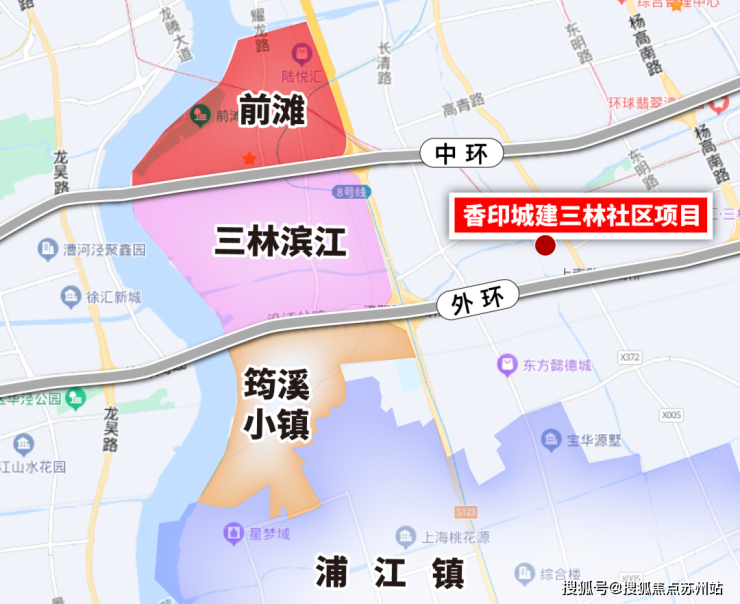 项目地块位于浦东中外环间,距离11号线三林站直线距离约500米,距离外环直线距离约400米。