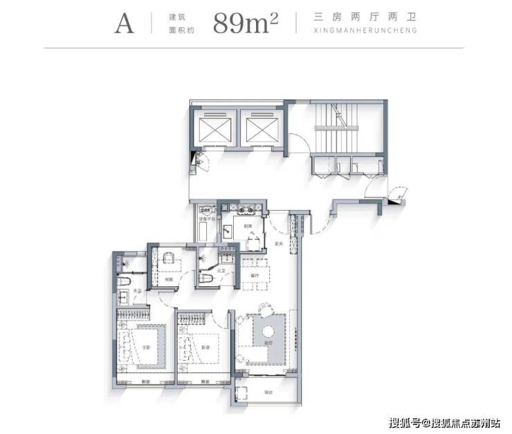 建面约89㎡三房两卫,不仅南向三开间、动静分区、主卧套房等好户型的硬指标拉满,更是杭州主城已难寻的经典户型。小户型总价低,轻松圆梦星缦和润的公园奢配生活。