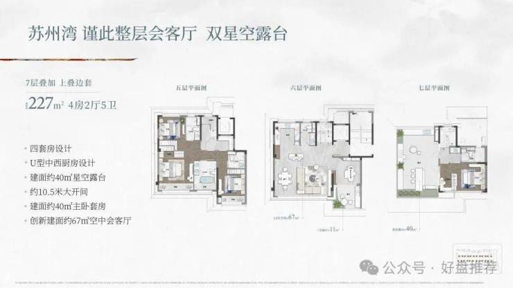颠覆型户型,高净值圈层共识。建面约180-300㎡的叠加产品,更是以“垂直四合院”理念引发市场惊叹。