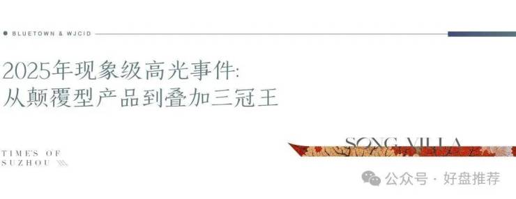 市场与圈层,用共识笃定品质。 产品力的硬核兑现,迅速转化为市场的强烈共鸣。项目荣膺2025年1-12月苏州叠加市场成交均价、套均总价、成交金额“三冠王”,以断层式领先成就了圈层置业的共同选择。