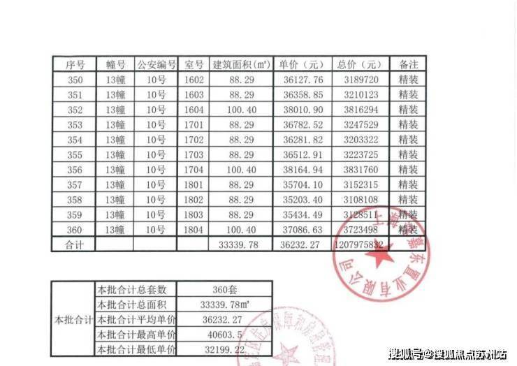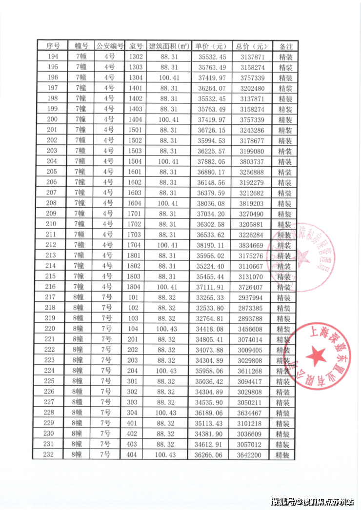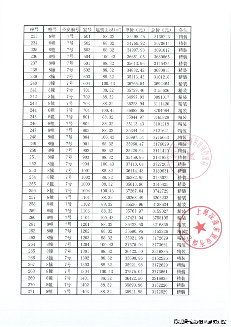 一房一价表:
