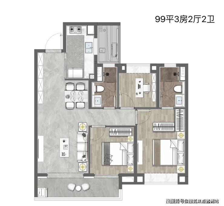 大面积的套房尺度,大尺度进深、从容有余的居住空间,奢阔飘窗、独立卫浴配置,打造尊崇的奢雅体验.百平米内的不将就三房,实现房间数量及空间尺度的均好平衡.