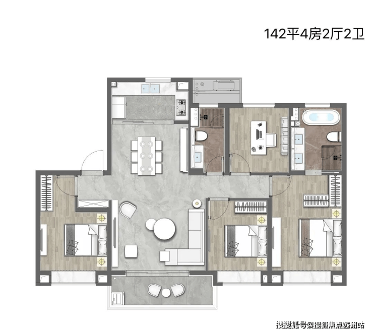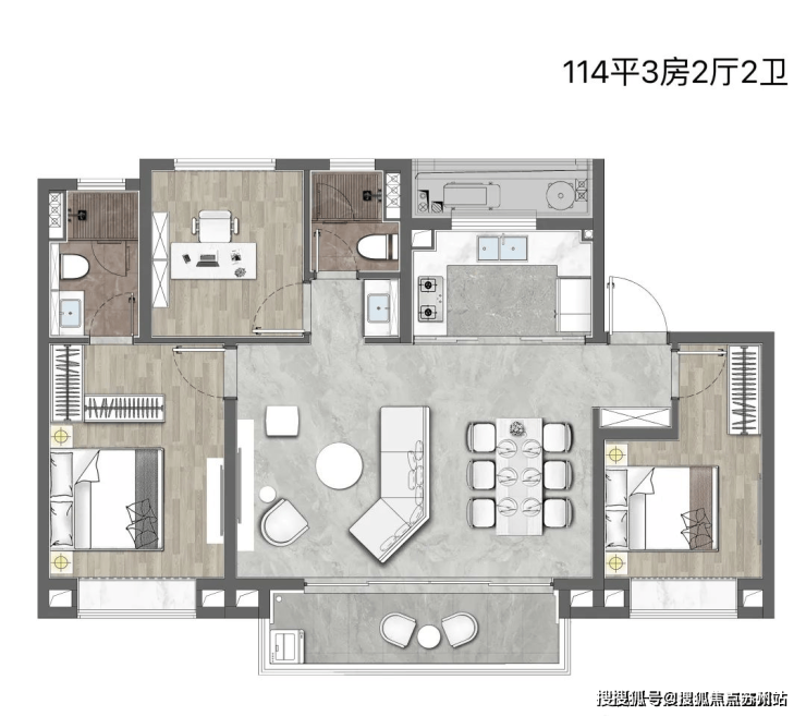 奢阔主卧套房,面宽和进深都很充裕,为每一个生活场景预留了足够的空间,可打造衣帽间,舒适感和品质感双重加持.