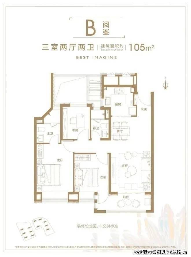 主力户型面积:约105-125㎡的3居室