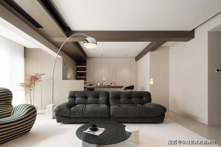 舒适的沙发悠然坐落,阳光轻柔地落下,自由的韵律铺满了一地,优美的鱼线灯划出天际,不经意间随性了这个舒坦的生活场所。