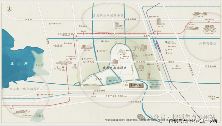 3. **明确的开发主体与设计理念**:开发商为央企**中交城投**,其在青浦有长期投资承诺(远期超500亿)。项目设计明确“不搞古建筑复刻”,而是将东方美学神韵融入现代建筑,并规划了“一轴两园五进十景”的园林体系。这表明了其瞄准高端改善、注重文化意象的产品路线。