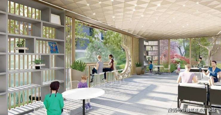 并在高层区打造约3米层高架空泛会所功能,排布了健身区、儿童区、国学文化和休闲座椅、邻里会客等多功能空间。