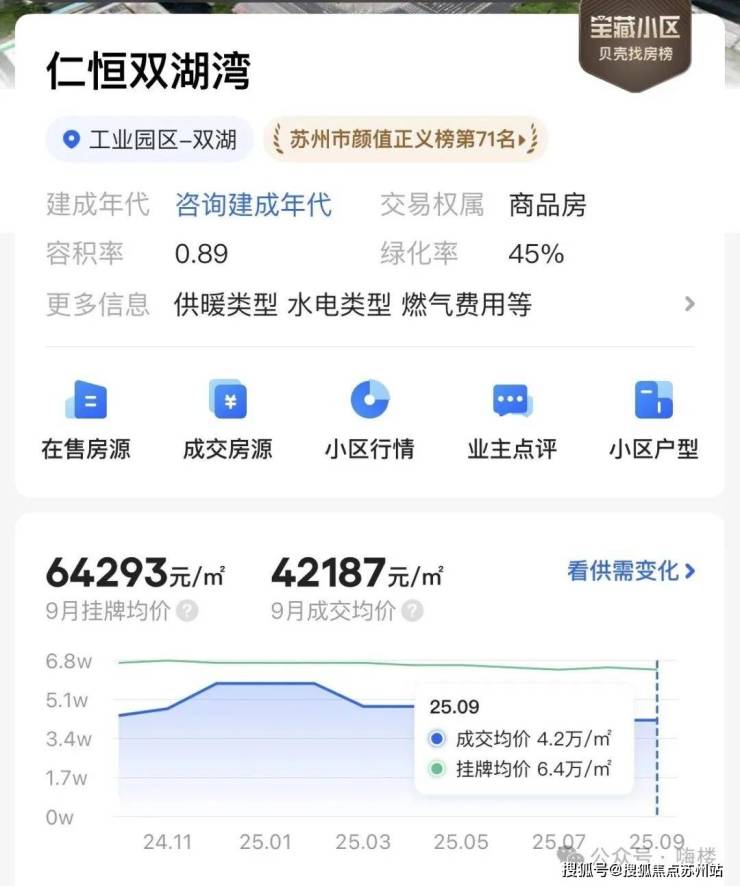 仁恒置地曾是中国高端房地产开发的标杆之一,以“国际社区”开发理念著称。在苏州市场,仁恒已有20年开发历史,打造了多个知名项目,其二手房溢价显著,如双湖湾项目二手单价曾高于周边约2万元/㎡。