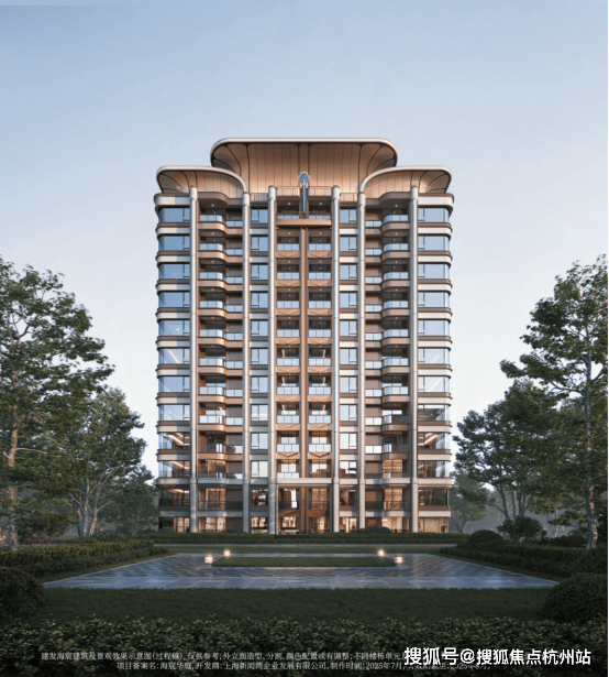 建发「宸系」中式作品,铝板与玻璃幕墙外立面,配园林景观。约1150套房源高低配,限高40米,含小高层、洋房、叠墅产品,满足刚需与改善需求。