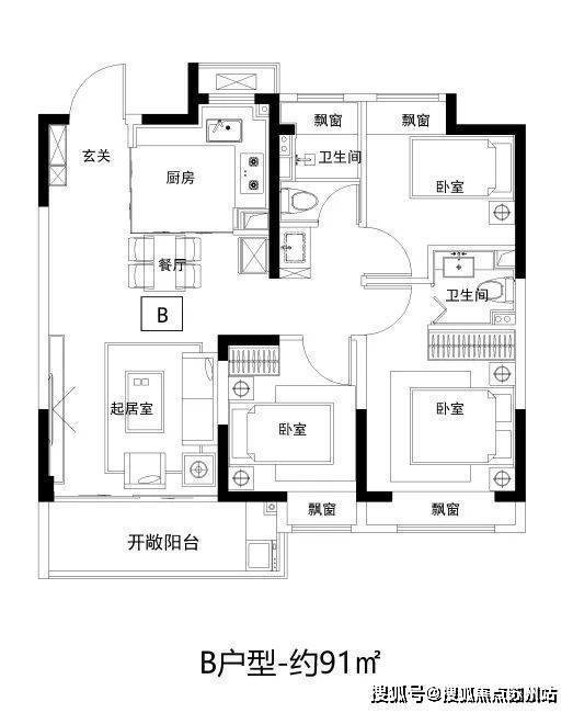 中国铁建熙语售楼处电话:400-8228-664【预约热线】☎建面约91㎡ 3房2厅1.5卫,3开间朝南,客餐厅连通阳台,四飘窗设计,套房式主卧,生活更加从容。