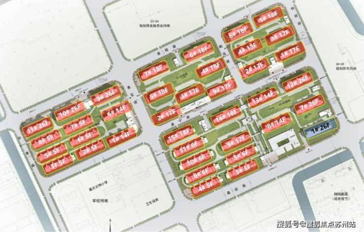 时代之城售楼处电话:400-9696-224,根据公示图显示,该项目的4个小板块最高层为项目东南角和西北角的26层高层,共有6栋,高度接近地块限高的80米(77.80米);18层的共有8栋;17层共有6栋;14层共有4栋;13层共有2栋;6层的共有4栋;5层的共有8栋。时代之城售楼处电话:400-9696-224