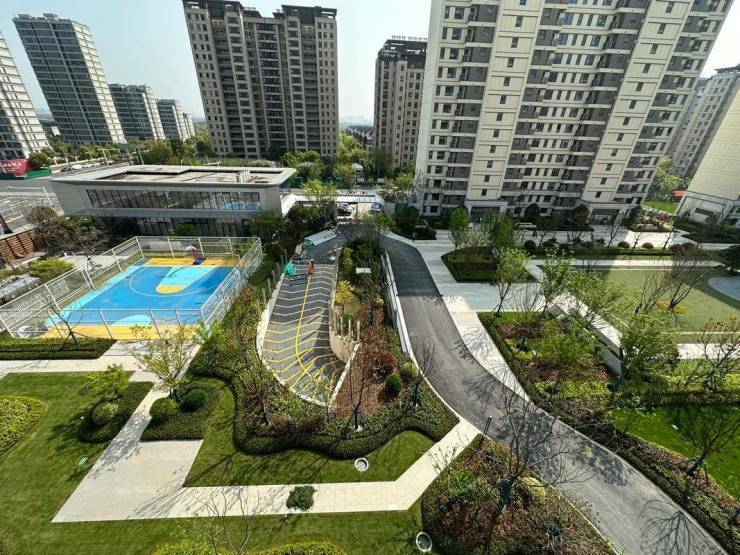 社区设计:约400米中央景观绿轴,七大主题园林(落樱影院区、银杏草坪区等)