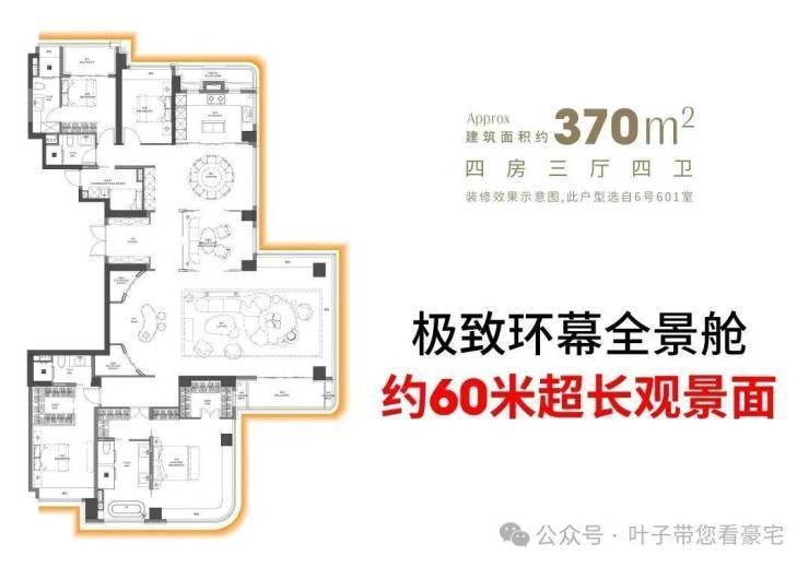 不夸张的讲,建面约280㎡是我至今看过顶豪界最完美的四面宽全景舱户型。