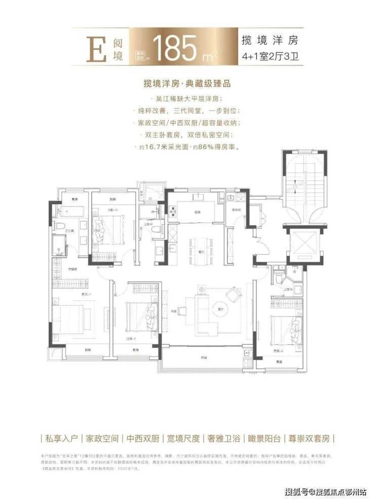 建面约205㎡洋房新品, 央景楼座,俯瞰一园精粹。约20米南向五开间、约8.1米巨幕横厅、双奢适套房主卧、中西双厨,处处彰显豪阔领域。因市场罕有的宽境尺度、高阶的精工标准、纯粹低密的观景视野,成为本次加推的明星户型。