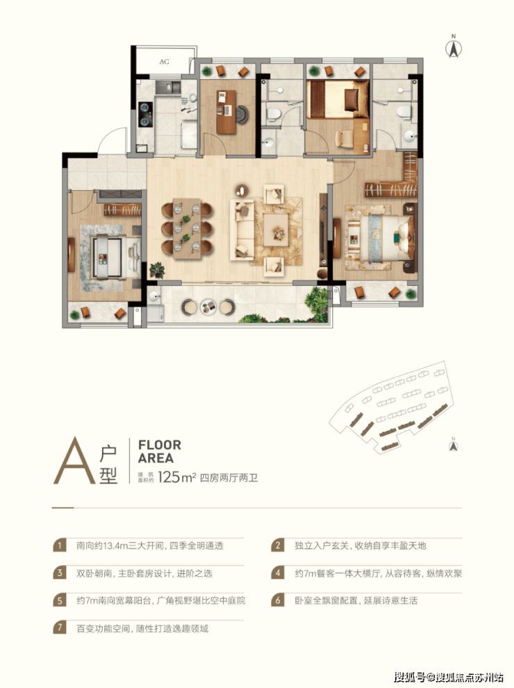 A户型 建筑面积约125㎡ 四房两厅两卫
