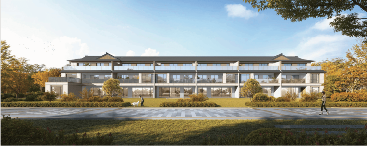 6,项目效果图上来看,整体都是大面积玻璃设计,比较时尚轻盈,别墅设计的是中式风格!