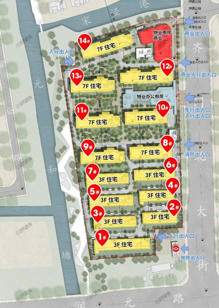 根据规划,项目共计打造了14栋住宅,其中7栋为3F住宅,7栋为7F住宅,北面还有一栋商业和物业用房!