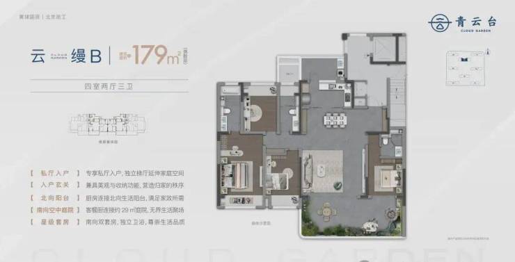 【户型亮点,颠覆想象】 这才是青云台最吸引人的地方!它创新地设计了“空中庭院”,最大的露台能有约54㎡,就像把别墅的花园搬到了空中,烧烤、种花、观景,功能随心变。电梯出来有专属的私家梯厅,最大约13㎡,增加了私密性和尊贵感。而且房子得房率很高,整体赠送面积约11-65㎡,部分户型空间使用率能达到100%,相当于买到的面积几乎都能用上。 装修也毫不含糊,配了智能门锁、品牌新风、三玻两腔玻璃、定制橱柜等,细节处处体现品质。