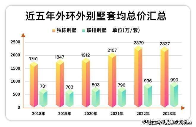诺大的外环外,2023年联排别墅的套均总价在约990万/套,独栋别墅套均总价更是高达2337万/套