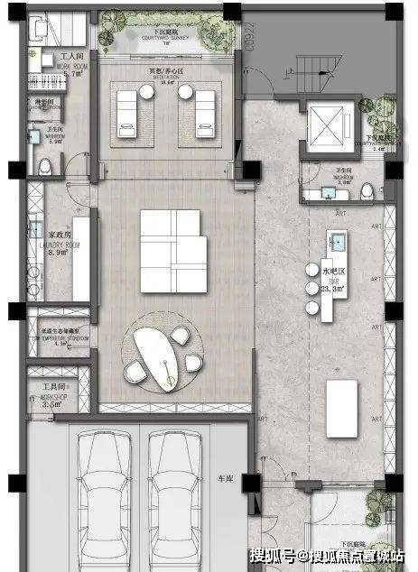 合院的景观灵感来自《庄子·知北游》:“天地有大美而不言,四时有明法而不议,万物有成理而不说.”