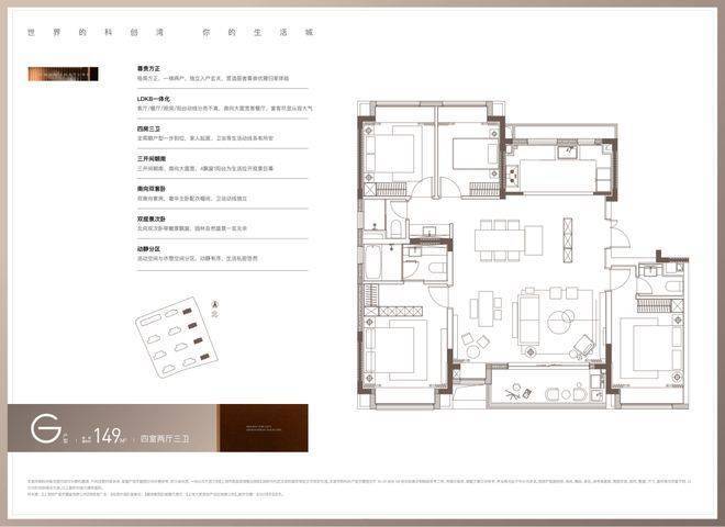 该户型最大亮点在于“3 卫” 配置,区别于市面上超98% 的150㎡四房两卫户型,可打造双南套房,充分保障家人的尊贵感与私密性。
