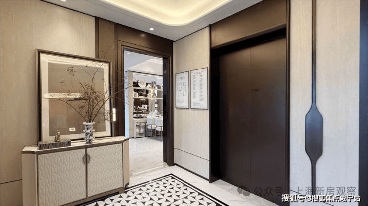 除此之外,酒店式迎宾大堂,仪式感归家入口,温情社区的重要展示;泛会所客厅,通过营造视线关系的尺度与对景的舒适度,营造精致时尚的仪式归家入口空间。