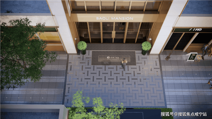 即便是公区部分,「保利虹桥和颂」依旧注重品质,门楼首层立面通过玻璃与金属的结合打造精致婉约的时尚商业形象,二层通过石材错落有致的拼贴,辅以不同表面的处理方式,展现充满活力的超长尺度形象界面。