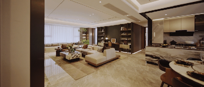 此外洄游入户光厅以情绪缓冲带,酝酿自带“呼吸感”的归家仪式;LDKGB大尺度一体化空间则形成大面宽家庭社交核心区;“客厅-空中庭院”动线,则让煮茶、观景、聚会的场景在踱步间自由切换;所有的一切都将重新定义住宅空间的物理边界与生活可能。