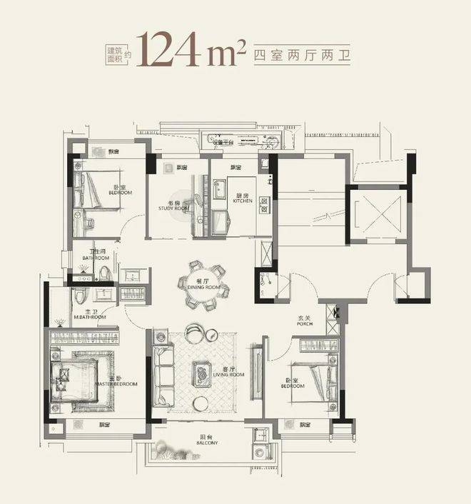 四室两厅两卫:主卧面宽约3.5米