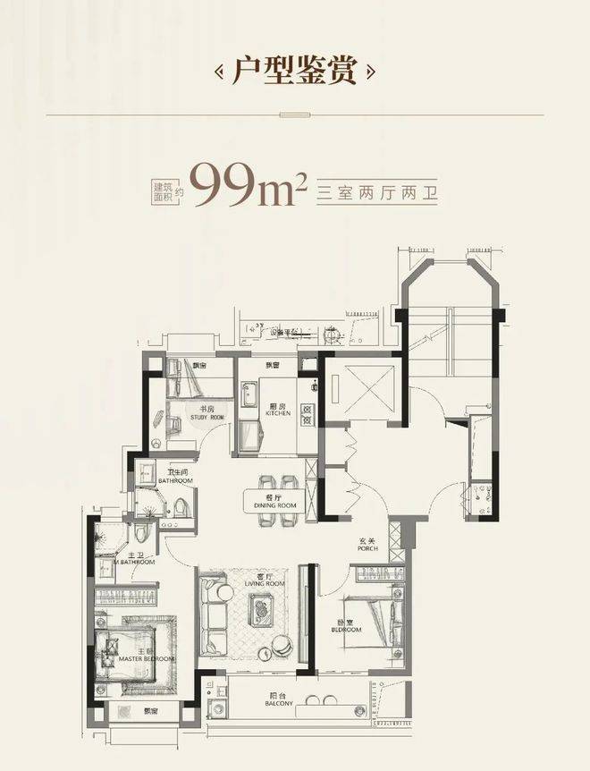 高层99㎡: 进阶版飞机大三房