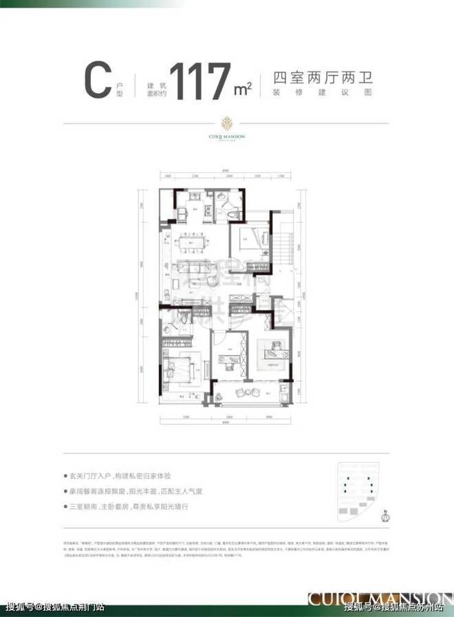 杭州滨江翠栖府售楼处电话☎:400-8828-814(售楼处预约看房热线)建面约128方采用了深受市场认可的经典的四叶草格局!这种户型的显著特点,就是消灭过道。客厅居于房子的中心,可以直接到达卧室、书房、厨房等各个空间。另外,4个功能间居于四角,对私密性的维护也和当下社会注重隐私的需求不谋而合,即使是孩子、长辈同住,也能有一个很好的家庭秩序。