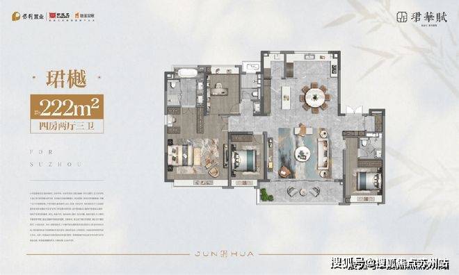 户型设计:苏州保利珺华赋售楼处电话☎:400-8828-814(售楼处预约看房热线)建筑面积约152-222㎡,奢阔空间尺度,科学匠心精研。