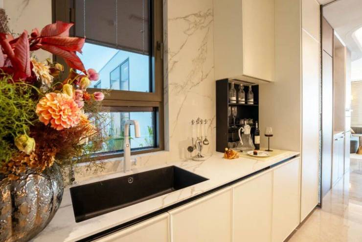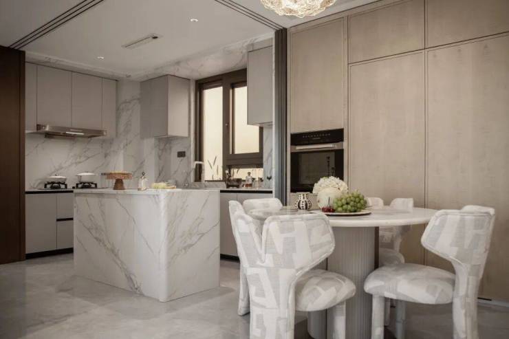厨房间配置了美诺六件套、交付的岛台,当你每次在家下厨或聚餐,你一定会惊叹于这些家电和设计的实用性。