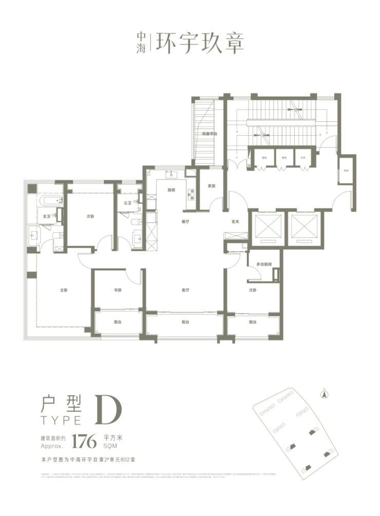全系3米层高+多阳台+高实得率,建面约123-176㎡3-4房