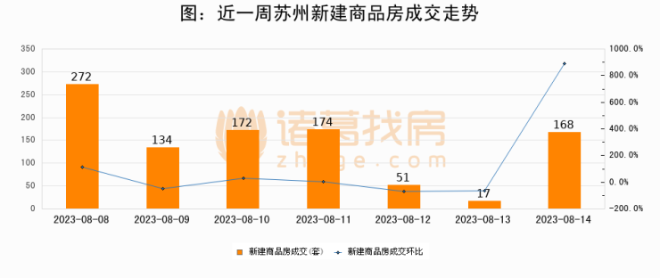 【苏州成交日报】08月14日新房成交168套、二手房210套;涨价房源150套