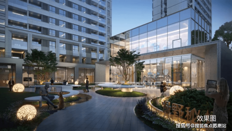 下沉式广场江心绿岛,配建社区活动中心,是业主们的社交空间,又能休憩停驻;