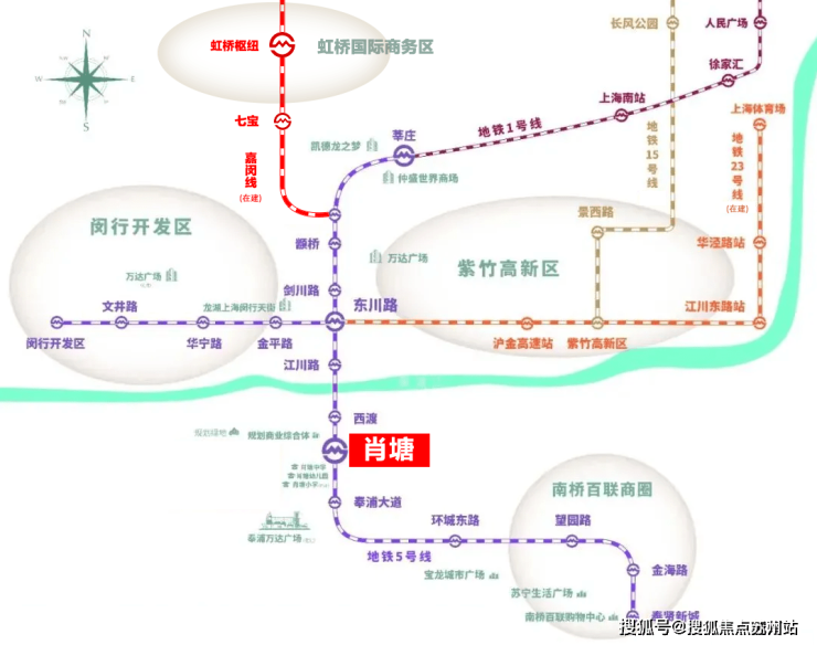 地铁23号线、市域铁嘉闵线均已开工建设, 未来肖塘地区通过5号线即可接入密集的轨道网络,无缝融入上海中心城区。