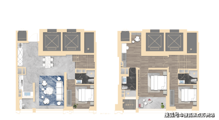 291、家配图:在墨线图的基础上配置上家具的平面效果表现图。