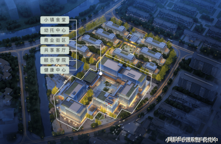 灵感源于上海老街区永平里和杭州天目里,广场和连廊空间串联多彩生活,约1.8万方小镇中心,包含有约5600方生活配套,设有小镇食堂、幼托中心、商业街区、共享客厅、颐乐学院、健康中心等。