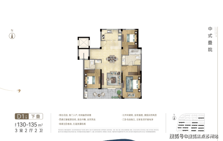 中式叠院顺应吴江文脉肌理,在文脉之上对传统进行承继与创新,融合古代官式建筑,用逐层退台的方式,将叠院的阳台和露台面积扩展到最大,可谓是“层层是花园,户户有园林”。A地块新品中式叠院,北临元荡湖,推窗即可享受无界湖景风光,实现临湖而居的美好愿景。纯粹低密的叠院住区,拉开建筑距离与开阔视野,尽享自然之景。