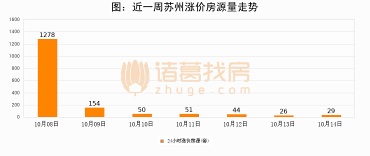 根据诸葛找房数据显示,苏州24小时涨价房源量为29套,较10月13日增加3套,环比上涨11.5%。与此同时,涨价房源占比小幅扩大,业主信心有所提升。