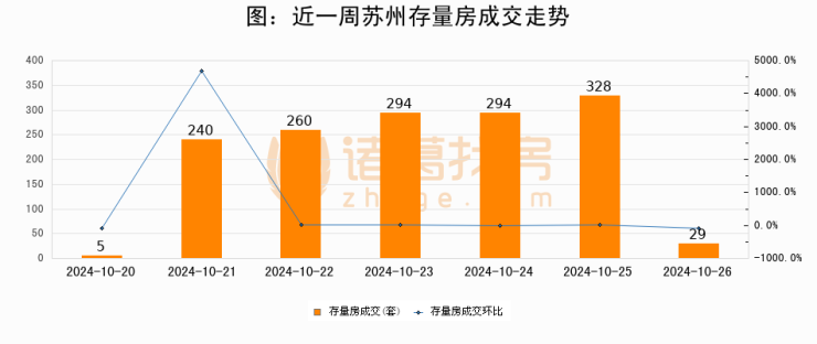 从存量房来看,2024年10月26日苏州存量房单日成交29套,比昨日减少299套,环比下降91.2%。从近一周存量房成交来看,苏州存量房日均成交套数为207套,10月26日单日成交29套,低于近一周平均水平86%。