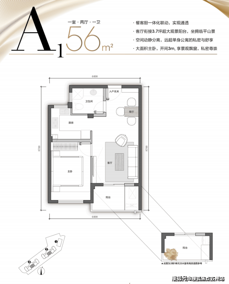 - 房型:涵盖56平方米、86平方米和93平方米的小洋房,共3幢多层建筑