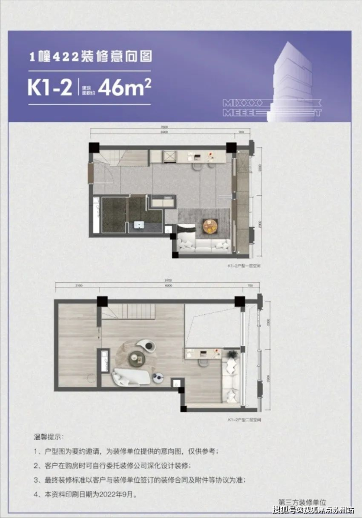好户型:建面约22-46㎡ Loft/双钥匙,