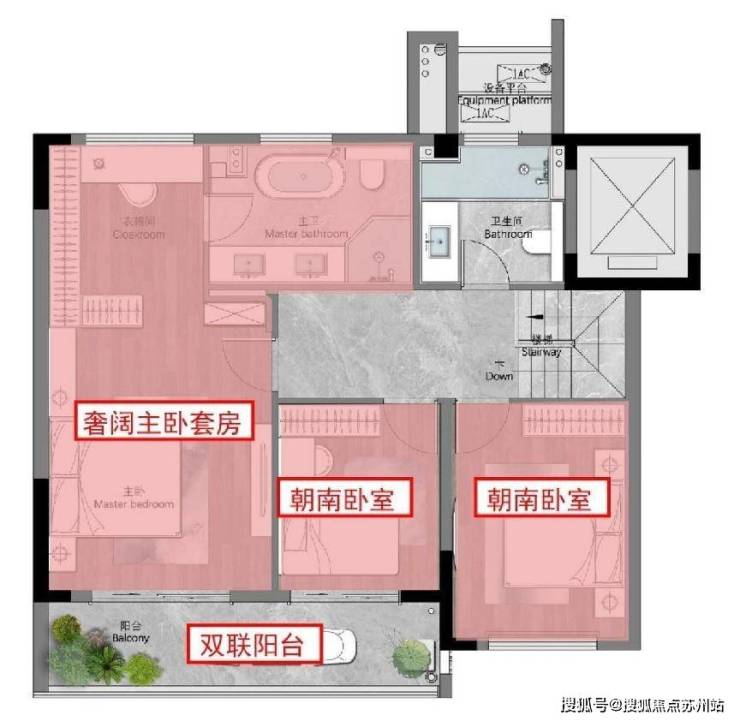 下叠一层拥有一间独立的南向房间,可作为老人房使用,所有卧室全部朝南,光线充沛、通风更好,住起来舒适性更高。