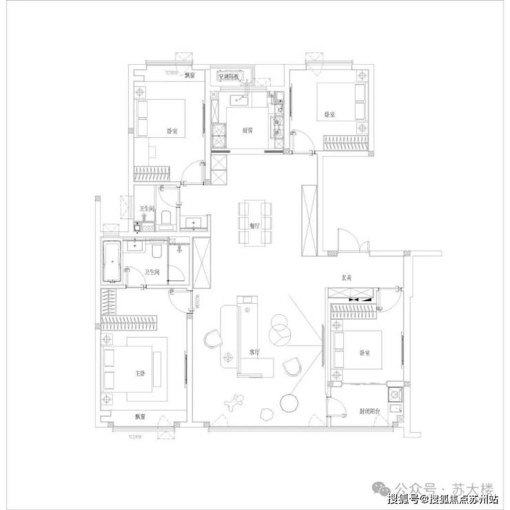 2梯4户设计,西边户为 4房2卫