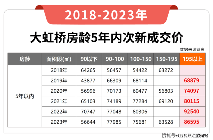 另一方面,小编也统计了链家上大虹桥房龄5年内次新的成交数据。