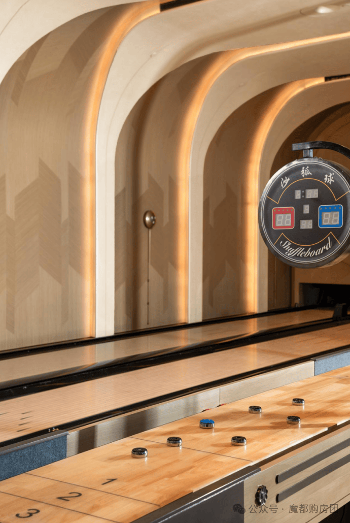 保龄球&沙壶馆:这是在市场很多顶豪都不一定有的首创功能。沙壶是起源于15世纪的英国贵族桌面游戏,如今已是高端派对及圈层聚会的社交催化剂;