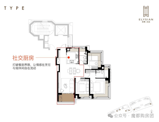 2.social厨房设计,开放式厨房水槽区转向餐厅一侧,杜绝消极空间让室内轻松连贯,也让情感交流、家庭互动在无界限。